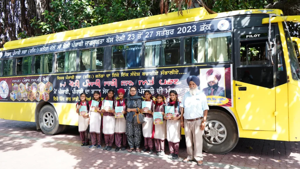 ਵਿਸ਼ਵ ਪੰਜਾਬੀ ਸਭਾ ਕਨੇਡਾ ਵੱਲੋਂ ਪੰਜਾਬੀ ਮਾਂ ਬੋਲੀ ਲਈ ਕੱਢੀ ਗਈ ਪੰਜ ਰੋਜ਼ਾ ਜਾਗਰੂਕਤਾ ਬਸ ਰੈਲੀ ਜੋਕਿ ਵਿਸ਼ਵ ਪੱਧਰ ਉੱਤੇ ਬਣੀ ਚਰਚਾ ਦਾ ਵਿਸ਼ਾ